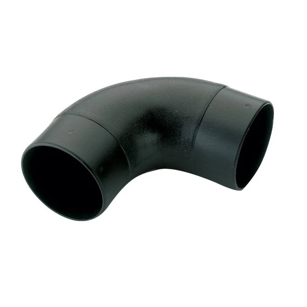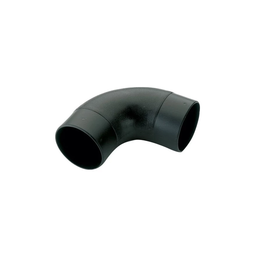 90 fokos könyök idom 100 mm -es elszívó rendszer kialakításához, fekete műanyagból.